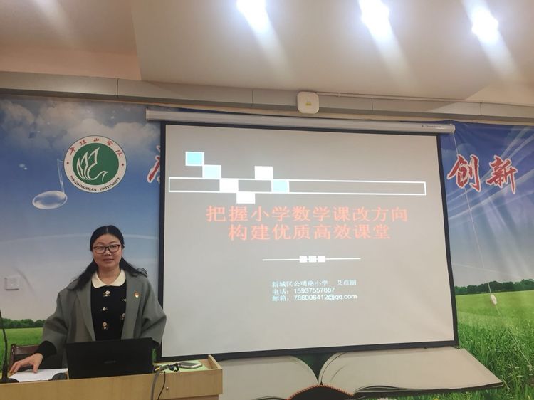 2018年11月12日下午,在伟德国际victor1946官网崇文校区b404教室,国培项目邀请了新城区公明路小学艾彦丽老师为学员授课,本次授课主要讲解了如何把握小学数学课改方向构建优质高效课堂。