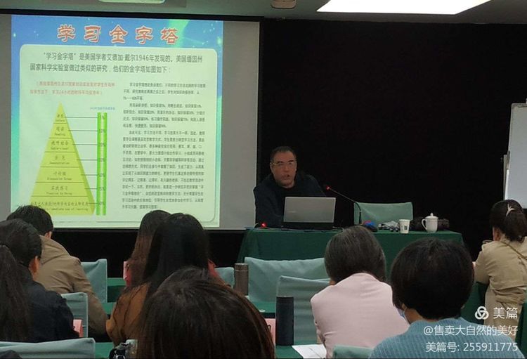 接着,张教授讲授了”学习金字塔”,这是美国学者艾德加戴尔1946年发现的。”学习金字塔”是说用耳朵听讲授,知识保留5%;用眼去阅读,知识保留10%;视听结合,知识保留20%;用演示的办法,知识保留30%;分组讨论法,知识保留50%;练习操作实践,知识保留75%;向别人讲授相互教,快速使用,知识保留90%。激发学员们思考:同样是被动学习,为什么有会较大学习效果的差异?
