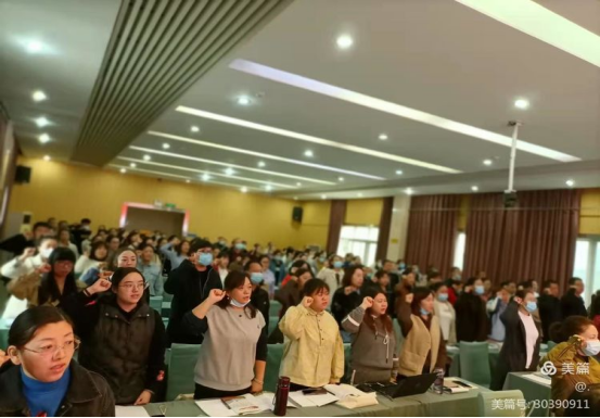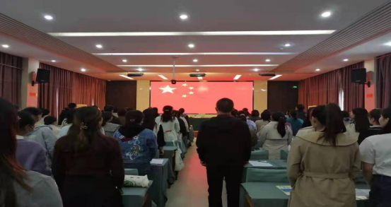 开班典礼在庄严的国歌声中开幕,随后来自省内不同地区的150名骨干教师们在鲜艳的五星红旗下重温教师誓词。
