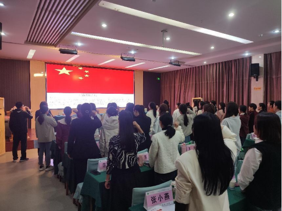 典礼开始,首先举行了庄严肃穆的升旗仪式,学员们庄重地注视国旗、唱国歌。接着,班主任彭鹏带领大家重温教师誓词,“我志愿做一名光荣的人民教师……爱岗敬业,教书育人,关爱员工”,在教育事业上勤勤恳恳奉献着青春的学员教师们再一次重温了当初选择这个职业的原因。