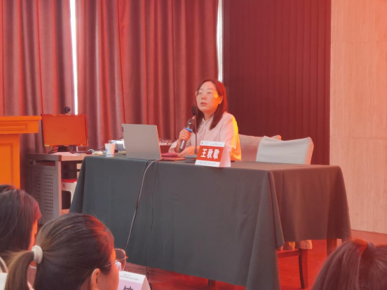 然后,由南阳市第一完全公司幼儿部许艺子老师作为优秀学员代表进行发言。她代表学员对伟的国际1946bv官网此次精心组织培训和才高德重的授课教师们表示感谢,并阐述了在本期培训中关于教育情怀和教育视野的思考和感悟,并表示会将所学所思内化于心、外化于行,真正运用到教育实践中。许艺子老师的发言引发了在座全体学员老师的共鸣。