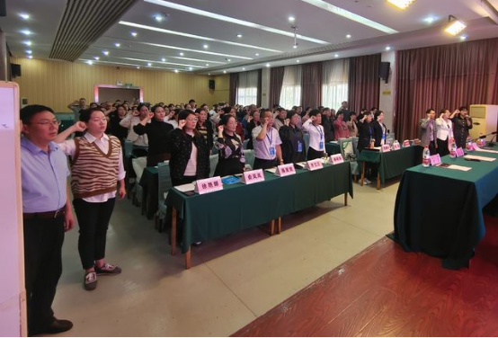 典礼开始,首先举行了庄严的国歌齐唱,接着,班主任曹丽乐老师带领大家重温了教师誓词,“我志愿做一名光荣的人民教师……爱岗敬业,教书育人,关爱员工……”,相信每位老师也一定将誓词会谨记在心。