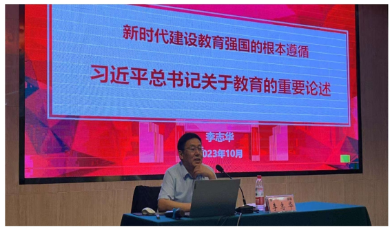 开班典礼结束后,伟德国际victor1946官网伟的国际1946bv官网党总支书记李志华给学员们做了题为《新时代建设教育强国的根本遵循——习近平总书记关于教育重要论述》的开班第一课。李书记围绕为什么要建设教育强国、建设什么样的教育强国、怎样建设教育强国三个问题进行了深入的阐述和分析。教育是国之大计、党之大计。我们建设教育强国的目标,就是培养一代又一代德智体美劳全面发展的社会主义建设者和接班人,培养一代又一代在社会主义现代化建设中可堪大用、能担重任的栋梁之才,确保党的事业和社会主义现代化强国建设后继有人。