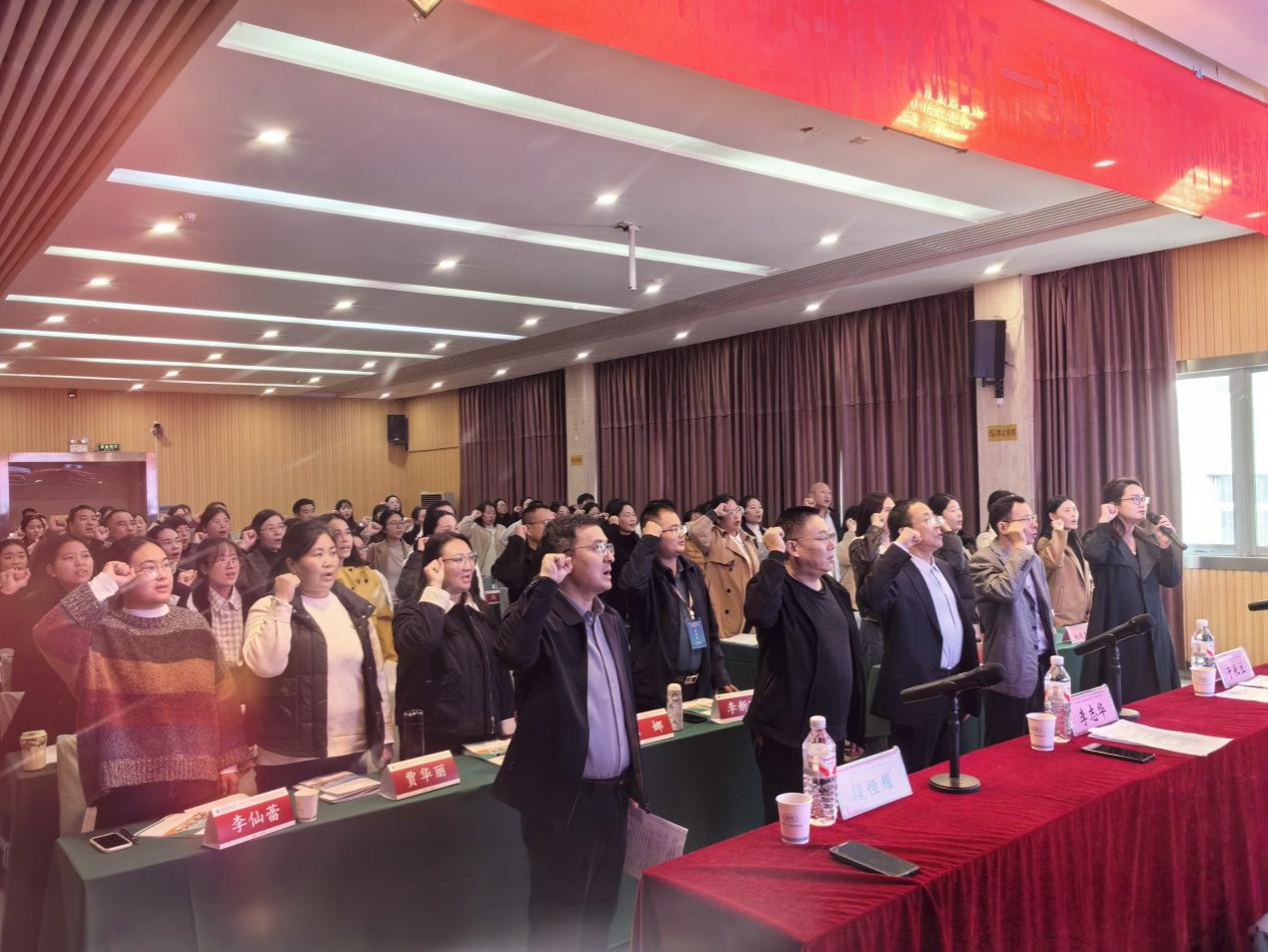 开班典礼在庄严而神圣的国歌声中拉开帷幕,班主任曹丽乐老师带领参训教师重温了教师誓词。