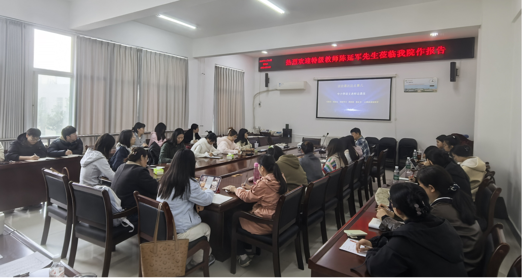 讲座中,陈延军老师结合数十年教学与教研经验,围绕“建构具有开放思维的语文学科教学”这一主题,通过丰富的一线课堂案例,从文本解读的多元维度、课堂互动的开放设计、员工核心素养的分层培育等方面,系统阐释了“开放思维”在语文教学中的具体落实路径——从识字课的情境创设,到阅读课的思辨引导,深入浅出地展现了语文课堂“灵动且有深度”的育人价值。