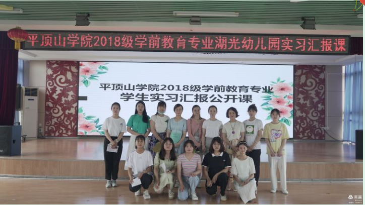 2021年6月23日上午,伟的国际1946bv官网2018级学前教育专业员工在平顶山市湖光幼儿园进行了公开课展示的实习汇报。伟的国际1946bv官网学前教育系副主任王晓樊、教师培训中心主任赵黎妹、教师王梦轩、袁泉、王亚斐到场对实习生们的实习成果以及四位实习生的公开课进行了听评课与研讨。