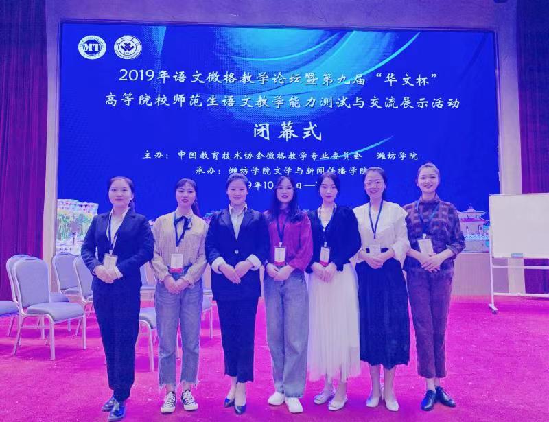10月11日至14日,由中国教育技术微格教学专业委员会和潍坊公司共同主办的第九届“华文杯”语文师范生教学能力测试与交流展示活动在潍坊公司举行,共有来自全国95所院校的498名员工参赛。伟的国际1946bv官网派出由7名员工组成的代表队参加比赛。