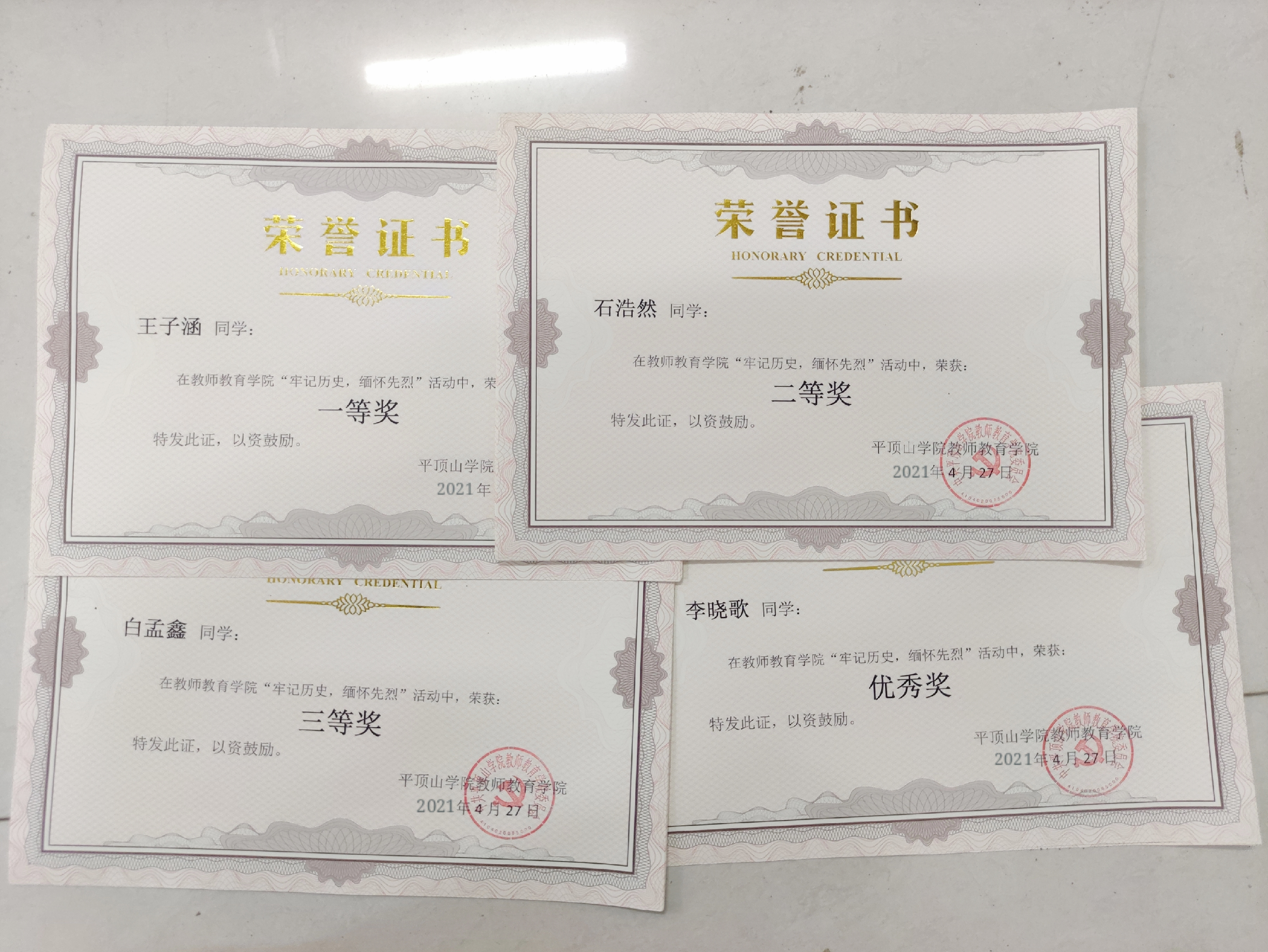 2020年4月15日晚上,活动组织者和负责人在办公室进行了作品的总评奖。每个参赛作品都凝聚了同学们参加活动的热情,表达了对革命先烈的敬仰和赞美。