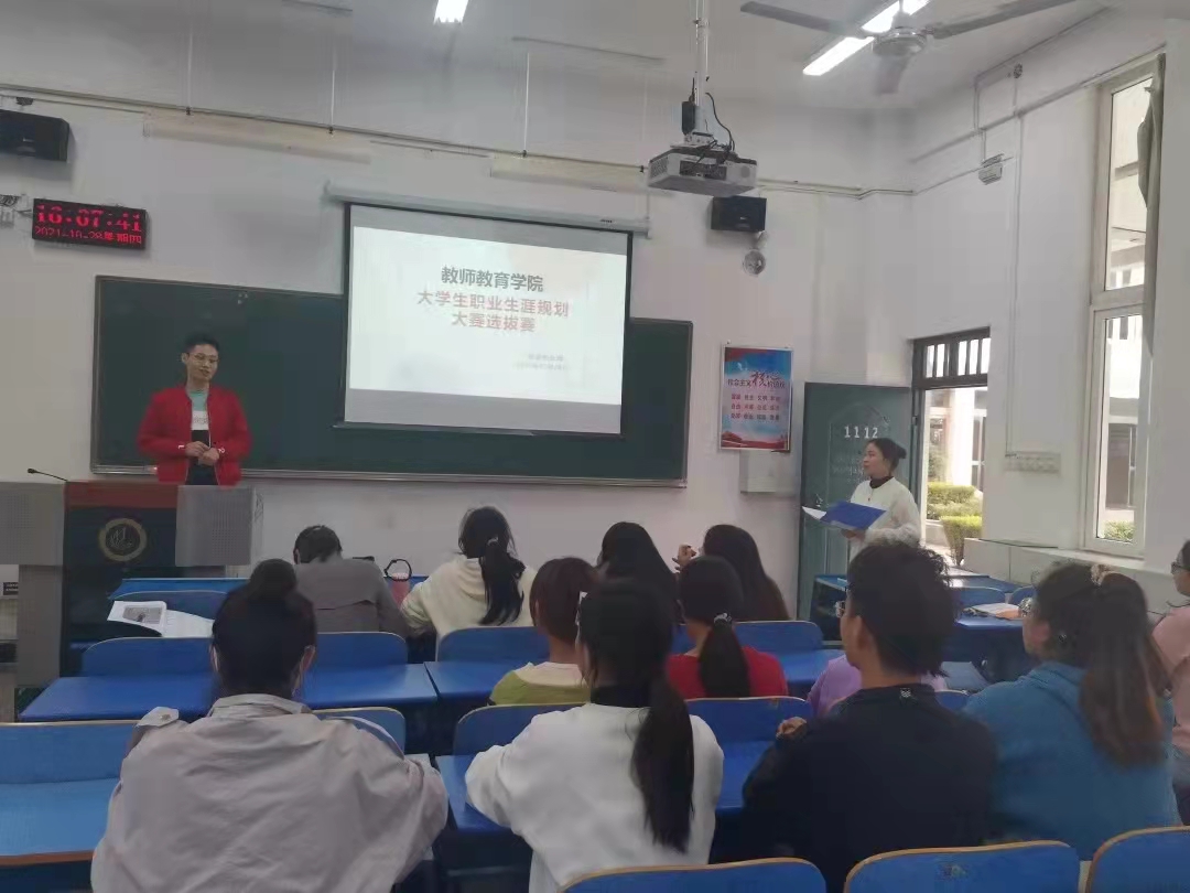 为了帮助同学们明确定位自己的发展方向,发掘自身的潜能,提高自己的就业竞争力和综合素质。10月28日下午,公司于1112教室举办老员工职业生涯规划大赛。此次比赛由团委副书记袁泉、辅导员杜慧芳、李世尧、李琦、邹兴泉五位老师担任评委,参赛对象为公司19、20级的员工。