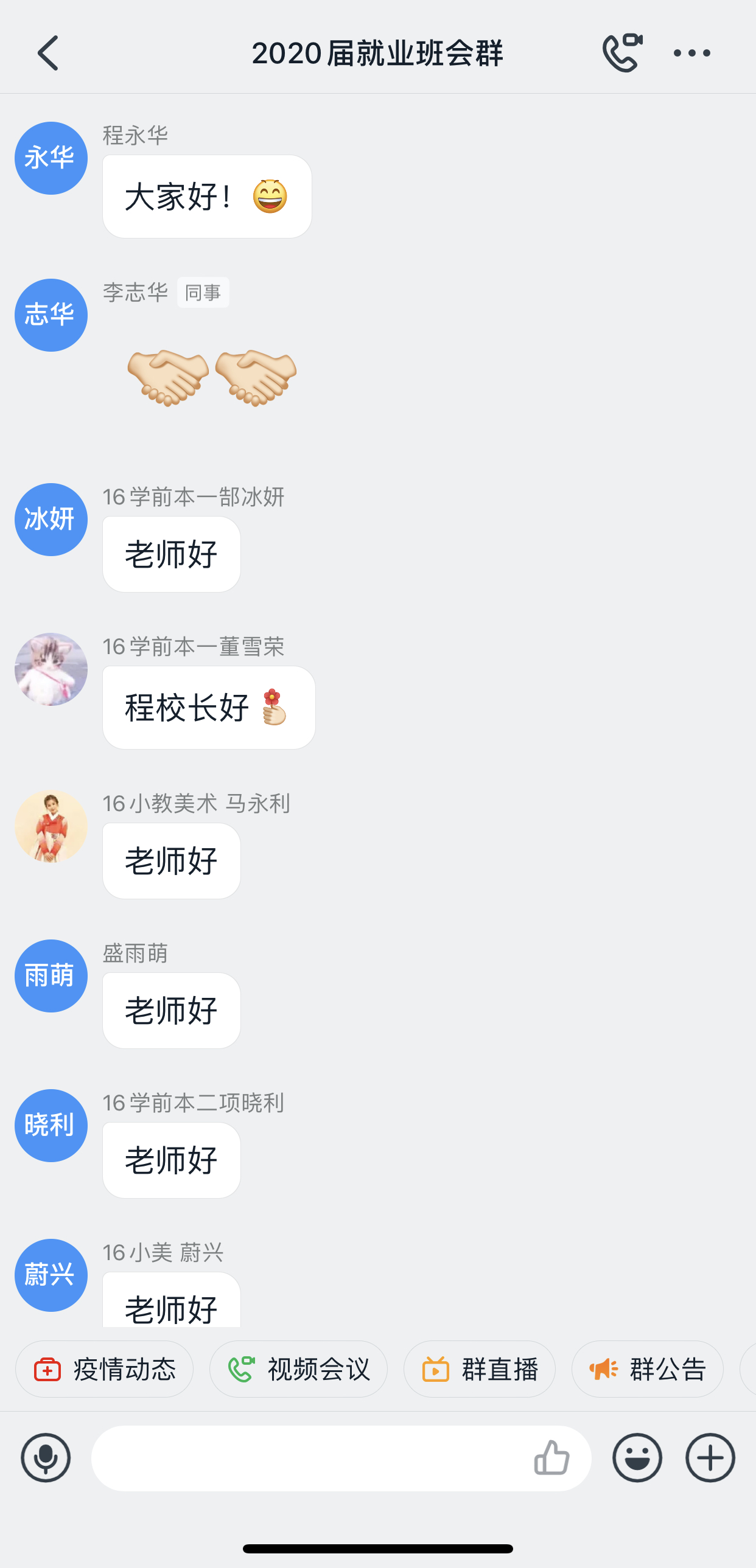 随后,李书记分析了当前疫情对公司小学教育和学前教育专业的就业形势影响,并对毕业班同学提出了殷切的希望,建议同学们着眼当下、发挥优势,抢占就业先机,了解各地政策,调整心理状态,做好就业准备,积极就业,更要对教师行业就业充满信心。
