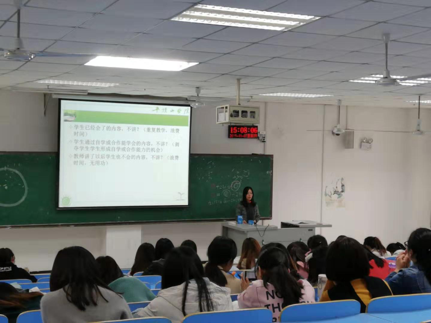 这次学术报告使同学们对今后将要从事的人民教师工作心怀期待,使她们深刻体会到人民教师应承担的责任和义务。希望同学们经过此次学术报告的洗礼和指引,能在坚守初心,勤劳奋进的路上越走越远。