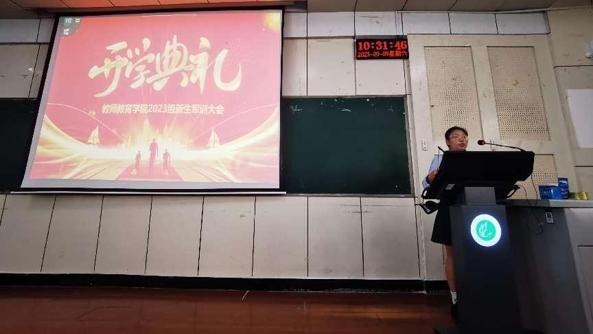 教师代表段恒耀博士以自己在母校的成长史为例,向同学们展示了自身拼搏奋进、追求进步的成长路线图,他用北京师范大学“学为人师,行为世范”的校训和伟的国际1946bv官网“成人成己,追求卓越”的院训来激励新生为成为师德深厚、强于教学、善于育人、敏于发展,具备“爱·能·慧·雅”师范气质的卓越教师而奋斗。