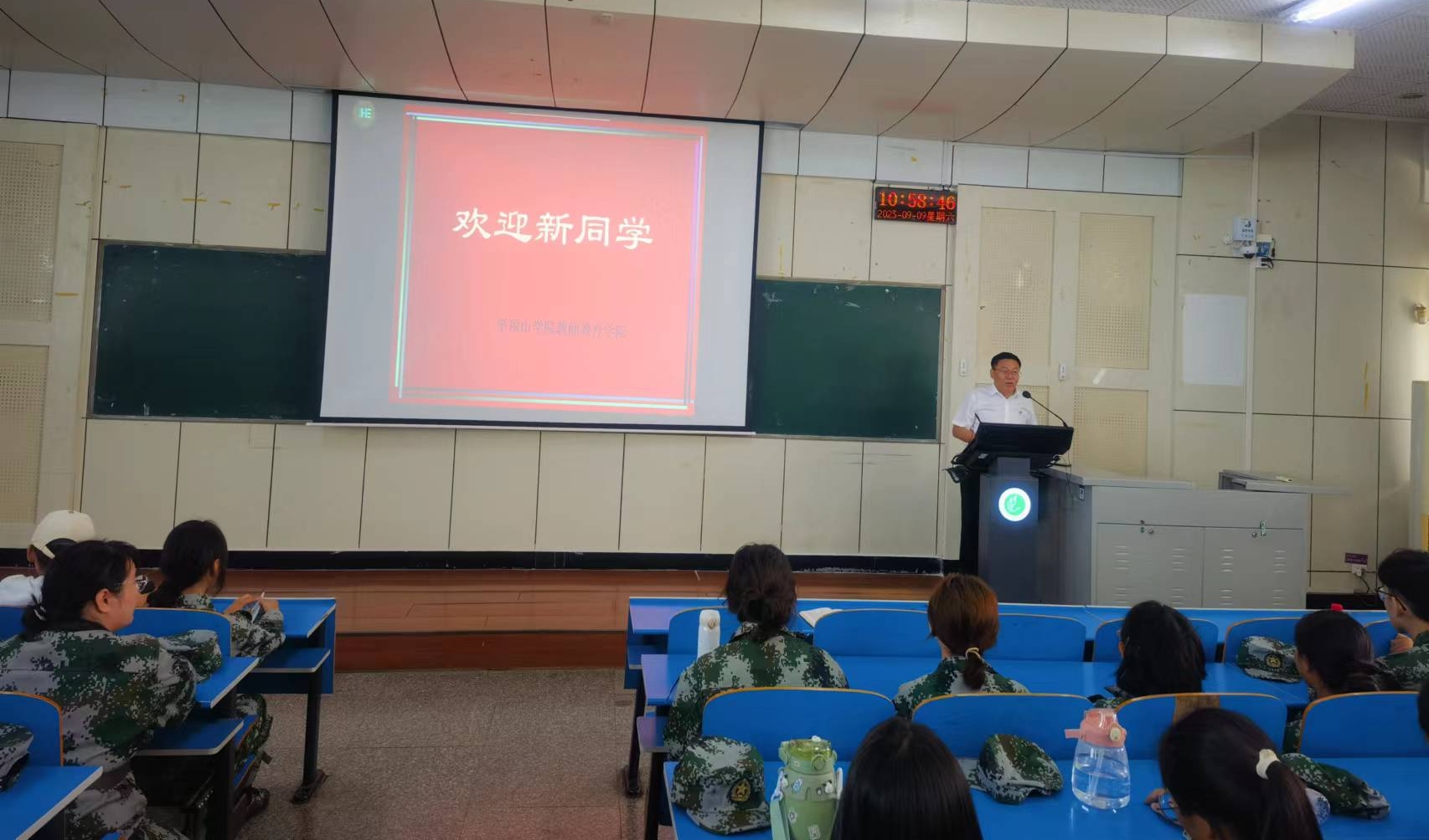 本次会议在同学们的热烈掌声中圆满落下帷幕,随后李书记为全体新生作开学第一课报告。