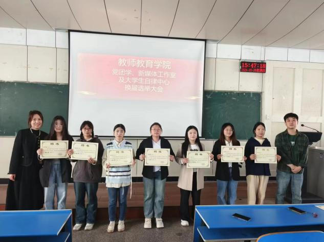 换届大会上,主持人张婧迪代表2023届主席团对过去一年的主席团工作进行总结汇报。接着,竞选人员依次进行演讲。他们结合所竞选部门的工作要求和对部门的认知,对个人工作成效进行细致剖析,阐述了各自的竞争优势、工作经历以及竞选成功后的规划。他们的精彩表现,赢得了阵阵掌声。竞选演讲结束后,全体成员进行投票并由相关工作人员统一收取了投票单,竞选环节结束。最后,袁泉老师、杨皓璞老师为2023届主席团成员颁发聘书并合影留念。换届大会圆满落幕。