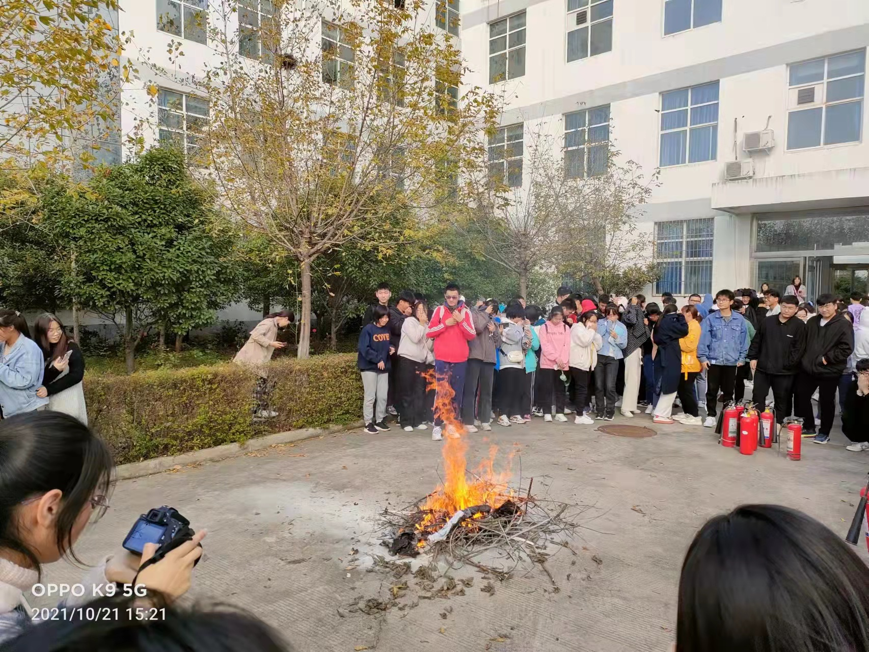 2021年10月21日下午公司教师郑朝峰、王桂琴、夏磊及2021级5名同学共同参加了伟德国际victor1946官网在化学实验楼的消防演练。